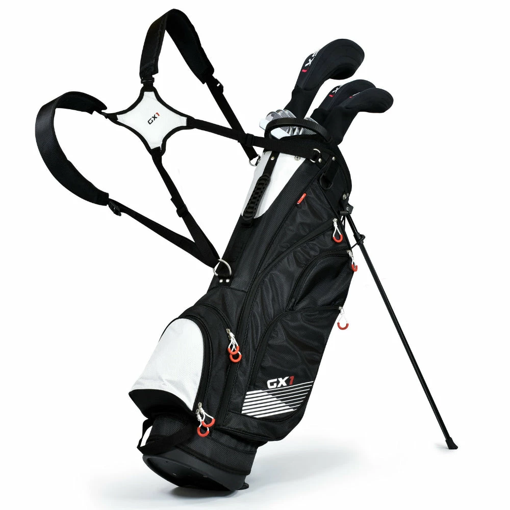 A golf bag designed to be lightweight and stylish, the Masters GX1 stand package golf set has a 6-way divider to arrange your clubs. It comes with 11 graphite shaft golf clubs with stainless steel head irons available for both left-hand and right-hand use.